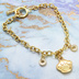 肉球モチーフを使ったシンプルで可愛いゴールドカラーのブレスレットです 人気のある肉球モチーフを採用して、猫好きの方はもちろんのこと、犬好きの方にもおすすめのアイテムです しっかりした幅のあるチェーンを採用してしっかりとブレスレットをアピールできるように仕上げています 肉球モチーフは表裏同じデザインになっています 普段使いはもちろんのこと、お出かけにも気軽に使えるようコンパクトでシンプルにしてあります ※素材はモチーフは亜鉛合金にメッキ、チェーンは鉄製にメッキです。金属アレルギーの方はご注意ください ※別カラーバージョンもございます 「材質」 モチーフ:亜鉛合金・メッキ加工 チェーン:鉄製・メッキ加工 金具など:スチール 「大きさ」 肉球モチーフ:約12mm×11mm チェーンの長さ:約17.5cm(金具を含めると18.5cm) 「重量」 約6.6グラム ※ご使用のモニターの色の違いにより、実際の商品と色味が若干異なる場合がございます。予めご了承ください NN-BR20