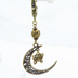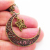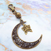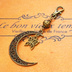 アンティークゴールド アラベスク調の透かし模様の三日月と蝶のキーホルダー バタフライ バッグチャーム 金具変更可