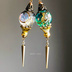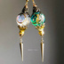 エメラルドと白銀三日月ランタンピアス イヤリング スチームパンク球体 宇宙 レジン メンズアクセサリーにも★