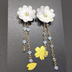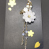 鶴丸国永イメージイヤーカフスとイヤリングです。 胸元の丸いポンポンを菊の花で表現しました。 スワロフスキー同等のクリスタルを使用していますので、驚きの輝きです! ・イヤーカフス サイズ:約11cm(本体約4cm つまみ細工+下がり約7cm)スワロフスキー同等クリスタル使用 シリコンキャッチ付き ・イヤリング サイズ 縦:約7cm 横:約2cm スワロフスキー同等クリスタル使用 ※写真は樹脂ピアスホストですが、無料でイヤリングに変更できます。お気軽にお問い合わせ下さい。