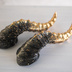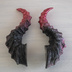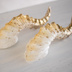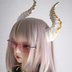 ✨️ブラック×金箔 黒のツノの先端に金箔をあしらいました。 光を受けて静かにきらめく、上品でゴージャスな仕上がりです。 エアブラシで金色の塗装を重ねた淡く広がる金の彩りが、存在感と奥行きを与えます。 🌹ブラック×レッド 黒をベースに、メタリックレッドを重ねました。 闇の中に浮かぶ赤の気配が、妖しく神秘的な印象を引き立てます。 角度によって表情を変える、印象的なツノパーツです。 ⚪️ホワイト×金箔 白のツノにシャンパンゴールドの箔をあしらい、 神秘的で幻想的な雰囲気に仕上げました。 大ぶりでありながら、女の子ドールにも自然に馴染む不思議な存在感があります。 表面はツヤのあるニスでコーティングしています。 強い摩擦や衝撃により箔が剥がれる場合がありますので、 引っかきや落下にはご注意ください。