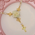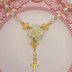ご覧いただきましてありがとうございます。 樹脂粘土製のパーツ、パールビーズを使用したネックレスです。 白に近いパウダーブルーのバラと桜のブーケに白のパールビーズを合わせ、涼やかな色合いに仕上げました。 チェーンに総数25個のパールビーズを組み込んでいますので、胸元や首元を華やかに飾ってくれます。 シンプルな装いの時のアクセントにいかがでしょうか。 お揃いのブーケを使ったピアスもございます。 https://sakurablossoms.booth.pm/items/3885177 ※注意※ ☆お花のパーツは樹脂粘土でできています。性質上強い力や水濡れに弱いので、やさしいお取り扱いをお願い致します。 ☆定形外郵便でのお届けのみとなります。 【Size】 チェーン:42~47cm(アジャスター:5cm) ・パールビーズ:4mm ・コネクター:8mm ネックレストップ: ・ブーケ:約1.7cm×1.6cm ・十字架チャーム:1.3cm×8mm