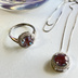 約8mmのラウンドタイプの青みの強いヴィンテージサフィレットを、小さなジルコンがアクセントに入った石座にセットしたアクセサリーセットです。 ネックレスはチェーンは45cm、指輪はフリーサイズです。 <サフィレットとは> 1900年代初頭にチェコのヤブロネツ地方で制作されていた変色ガラスです。1929年の世界恐慌とそれに続く第二次世界大戦で製造法が失われました。その後、1950年代に西ドイツを中心に製造の再開が試みられました。 1900年代初頭にチェコで製作された物はアンティークサフィレット、1950年代以降に西ドイツで製作された物はヴィンテージサフィレット(=サフィリーン)と区別されます。 詳細はコレクターの方などが丁寧に解説してくださっているサイトやまとめなどがありますのでそちらをご参照いただければと思います。 ※メインのストーンはヴィンテージ品となります。表面に小傷などがございます。ご了承いただきますようお願いします。 ※いろいろな方に手に取っていただければと思っております。販売開始直後 (24時間程度目安)は、お一人様2〜3種類程度の購入にご協力いただければ幸いです。 ※一つずつ丁寧に作るよう心がけておりますが、繊細な作りとなっていますので、強い負荷などはかけないようにご注意ください。 ※できるだけ実物に近づけるように努力していますが、実物と写真の色味がちがって見える場合があるかと思います。気になる場合、購入前にお問い合わせいただければ幸いです。