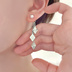 パールのピアスのキャッチに、ひし形の飾りがついた、より再現度が高い作品です。 片耳分。 ディズニー ツイステッドワンダーランド(Twisted Wonderland)のキャラクター、リーチ兄弟(ジェイド・リーチ、フロイド・リーチ)のピアスを普段使いしやすいようデザインアレンジしたスタッドピアスです。 細かいカットの入った菱形が3つ揺れる作品です。 モチーフ自体のデザインはそのままに、色をメタリックシルバーで統一し、さりげなく普段使いしやすいようにしました。 またサイズを比較的小さく、また飾りを一般的な前に付く形にすることで装着しやすいようリデザインしました。 金色で統一された格好良いデザインです。 両耳販売も行っております。 ひし形の大きさは縦1.2cm、アクセサリーの揺れる部分全体が約3.5cmです。 金具色はシルバーです。 同じデザインでイヤリング(ノンホールピアス)のものもございます。 同じデザインで金具色がゴールドのものもございます。 小型ダンボールに梱包材と共にラッピングし、定形外郵便で発送させて頂きます。 一つ一つ手作りしたハンドメイド作品です。無理な力を加えたりしないで下さい。 お使いのモニター、ディスプレイによっては画像の色調が異なって見える場合がございます。 色々なご要望にお応えできます。ご遠慮なくご相談下さい。