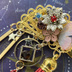 【水の月の髪飾り】 桜 ドールサイズの髪飾りを制作いたしました。 髪飾りはお人形、向かって右側のウィッグへ、クリップで留めて頂ける様に制作しております。 お品物は、髪飾り1点のみです。お人形が写っているお写真は着用例(MDD)となりますので、サイズ感等をご参考ください。(ドール本体や、撮影用に使用している小物類は付属致しませんのでご注意ください) ◆使用素材等◆ 金属、シフォンパーツ、ガラスやタッセル、プラスチック等色々です。難黄変のレジンや、ニカン・丸カン等で各パーツの接着を行っております。 金属・レジンアレルギーの方はご注意ください。 できるだけパーツが外れたりしないよう、ニカンを中心に使用し、マルカン使用部分で、外れる不安がある箇所に関してはレジンにて隙間をふさいでおりますが、華奢なパーツ類も使用しておりますため、優しくお取り扱いいただけますようお願い致します。 金属パーツに関してですが、海外製品も使用しており、なるべく綺麗なものを選んで使用しておりますが、どうしても元々少々のスレや小傷などがあるパーツもございます。お気になされる方はご購入をご遠慮くださいますようお願い致します。 ◆ドール着用時のご注意◆ 必ず、ウィッグの上からのご使用をお願い致します。金属パーツを使用しています為、お顔にパーツが当たらない様装着してあげて下さい。 色移りは湿度や条件によって変わってきますので、長時間の装着したまま・・は推奨できません。様子をご覧いただきご使用をお願い致します。 (念の為、特にタッセル部分はお顔など本体に直接触れない様ににご使用下さい) 大変すみませんが、色移りや、パーツこすりでのメイクの削れ等での責任は当方では負えませんのでご了承ください。 ◆その他◆ 丁寧に一点・一点手作り致しましたが、手作業です。プロの作品のようなクオリティーはございませんので、ハンドメイドへのご理解をいただき、雰囲気を気に入って下さった方のご購入をお待ちしております。 ◆発送に関しまして◆ 少々お待たせいたしますが、都合により発送まで最大で、一週間(土日祝を除く)程度頂戴しますが、ご了承ください。