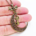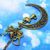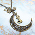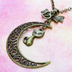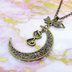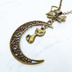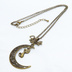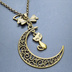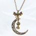 アンティークカラーの猫と透かし三日月の大人可愛いネックレス ムーンネックレス リボン ハート 金古美色