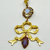 ヴィンテージリプロダクトのリボンのブラスパーツを使用したペンダントです。サフィレット風のフロストタイプのヴィンテージの変色ガラスと、スワロフスキーストーンを使用しています。 ネックレスは約45cm+アジャスター5cmです。 ※いろいろな方に手に取っていただければと思っております。販売開始直後(24時間程度目安)は、お一人様2〜3種類程度の購入にご協力いただければ幸いです。 ※一つずつ丁寧に作るよう心がけておりますが、繊細な作りとなっていますので、強い負荷などはかけないようにご注意ください。 ※できるだけ実物に近づけるように努力していますが、実物と写真の色味がちがって見える場合があるかと思います。気になる場合、購入前にお問い合わせいただければ幸いです。 ※ハンドメイド品のため、写真と若干の個体差がある場合があります。ご了承いただきますようお願いします。