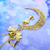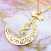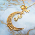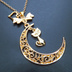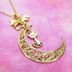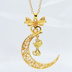 マットゴールドの猫と透かし三日月の大人可愛いネックレス ムーンネックレス リボン ハート
