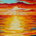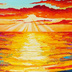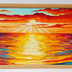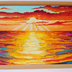 油絵 絵画 夕日の海【A3】