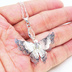 シルバーカラー バタフライ ペンダント ネックレス 繊細なつくりで立体的に表現された蝶 スワロフスキー 立体 ラインストーン 長さ調整可