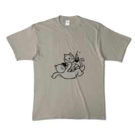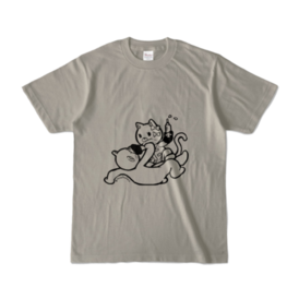 ネコチャンクマチャンTシャツグレー