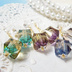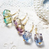コロン、コロン。 グラデーションのヴィトライユカラーが綺麗なカットキューブ型の国産アクリルビーズ。 美味しそうな寒天和菓子の様な。 揺れる様を楽しんで欲しくて、コネクターパーツで長さを出しました。 さり気なく、星のスパングルを使用。 大ぶりなビーズなので小物コーデを主張して。 透明感が美しいので自然光やお外撮影に是非。 夏のバカンスお嬢さんや、水着やパレオとも相性がいいですよ。 着物や浴衣に合わせても涼やかでいいですね。 シンプル白シャツの男の子ドールに片耳だけつけるのもとてもえっちでいいと思います!(早口大声) SD・DDサイズ ペアでの販売です。 透明な樹脂製のパーツを使用、金具が目立つことなく撮影にも向いています。 小さなパールを埋め込み、目立たない部分も可愛く。 挟むだけの簡単装着。 ドール耳のホール部分(実際は開いてませんが)に 丁度挟むようにして頂けるとバランスが取り易いです。 造形により耳の形状も違う為、着用可/不可あり。 樹脂ノンホールピアスパーツ:約11mm 埋め込みラインストーン(チェコガラス):PP24(約2mm) カットキューブ(アクリル):10mm 星スパングル:5mm コネクター:8mm 金具:ゴールドカラー(メッキ) ※ラインストーンの埋め込みにはボンドを使用しています。 金具カラーの変更オーダー可能です(シルバーカラー)。 ご希望の場合はメッセージにてご連絡頂くか、事前にお問い合わせ下さい。 ※受注製作となります。