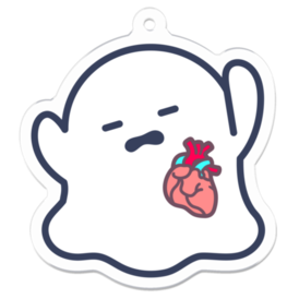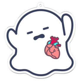 心臓がついてるオバケのアクキーです。この商品はpixivFACTORYで作られた商品です。サンプル画像は完成イメージのため、実物と異なる場合があります。