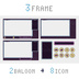 サイズ:1920 × 1080 px ファイル形式:png ゲーム画面部分のアスペクト比は16:9です ■ファイル内容 ・全体フレーム3種×4色 ・コメントフレーム1種×4色(360×588px) ・ふきだしフレーム1種×4色(644×124px) ・アイコン8種×4色(92×92px) ※サンプル画像には「Sample」の文字と、斜線の透かしが入っておりますが、実際の商品には入っておりません。