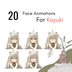 20 face animations for Koyuki --------------------------------------------------------- Only face 20 animations ** This animation is just an animation, no model in the packet. ** --------------------------------------------------------- Koyuki original model : https://kyubihome.booth.pm/items/2554585