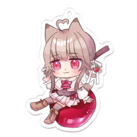 さくらんぼの上に座ったかこちぇりのアクリルキーホルダーです✨ 2枚目のサンプルは70x70のサイズです。 --- この商品はpixivFACTORYで作られた商品です。サンプル画像は完成イメージのため、実物と異なる場合があります。