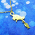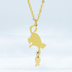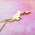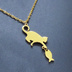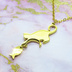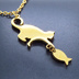 ステンレス製 魚を取ろうとする仕草の猫シルエットモチーフのネックレス ゴールドカラー