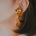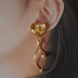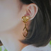 金箔の封じ込められたハート型のアクリルカボションに螺旋を描くようなメタルパーツを合わせ、大振りな耳飾りをお仕立てしてみました。 メタルパーツの中央にはライトピーチカラーの小さな樹脂パールをチェーンで飾り付け、ご着用いただいた際にゆらゆらと揺れて輝くようにお仕立てしております。 大振りながらも軽く、愛らしい雰囲気の耳飾りに仕上がったかと思います。 長さ:約7㎝ ※こちらは受注生産のお品物です。 材料の入手が難しいため、ピアス・イヤリング共通の在庫で再販不可の一点物となります。 minneでも販売中のため、タイミングによっては品切れとなる場合がございますが、予めご了承ください。 写真はイヤリングでお仕立てしたイメージです。 ポストピアスとネジバネ式イヤリング(滑り止め用シリコンゴム付)をご選択いただけます。 ご希望の金具をご選択ください。