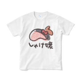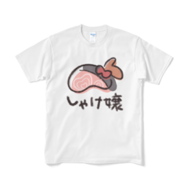 Tシャツ(短納期) - XL - ホワイトこだちちゃんも愛用のしゃけ嬢Tシャツ、ハートも入った特別バージョン! イラスト、デザイン:むぎこさん(@mugiko_mugi_)