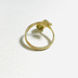 新緑のような爽やかなグリーンの天然石、ペリドットを使用したリングです。華奢なリンゴのモチーフが手元を華やかに彩ります。 軽い着け心地で普段使いにもおすすめです。 こちらはフリーサイズのリングになります。 リング部分は柔らかい金属を使用しているため、サイズ調節の際はリングを両手で持ってゆっくり動かして下さい。 ※素材の性質上、サイズを調節するとリングに若干の歪みが生じる場合があります。 調整無しの状態で、サイズは約11〜12号位です。 ⭐︎あらかじめサイズのご希望がありましたら、ご購入後にメッセージから号数をお伝えください。リングゲージを使用して調整致します。 ※石留めは接着剤不使用ですので、強い衝撃などがあると外れる場合があります