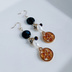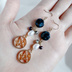 丸とお星様が組み合わったお洒落なパーツに淡水パールやブラック系のチェコビーズ、ガラスビーズなどを合わせたお洒落な揺れるタイプの作品となっております☆ メインのお色はブラックとホワイトの2色、ゴールド金具と合わせて大人っぽい色合いにまとめました☆ アレルギー対応のピアスやイヤリングへの変更についてはご注文時にオプションよりご希望金具をお選び下さい☆ ※こんな方におすすめ♪ *大切な方へのプレゼントに *モノトーン色がお好きな方に *お星様がお好きな方に *揺れるタイプの作品がお好きな方に ☆チェコビーズ ブラック&グレーミックス フラットラウンド型 約10mm ☆淡水パール ライス型 約8mm程 ☆ガラスビーズ フルコートシルバー ボタンカット 4mm ☆ガラスビーズ ハーフコートメタリックパープル ボタンカット 4mm ☆お星様パーツ ゴールド ☆丸カン ☆9ピン ☆Tピン ☆ピアス用金具(フック式☆ゴールド) 長さは約6cmとなっております。(約1cm程のピアス金具を含む)