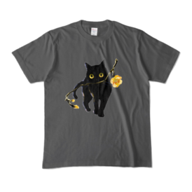 031はちわびねこ🌱カラーTシャツ(チャコール)