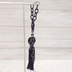 使用素材:オニキス・チェコビーズ タッセル素材:レース糸 基本金属:ガンメタリック(ブラック・黒) 長さ:飾り部分12㎝、チェーン部分15cm タッセルは柔らかい糸で作っているため、お好みで細くまとめていただくこともできますし、指でそっとつぶしてのばしていただければ大きく広がったように見た目を変えることができます。 バッグに取り付ける部分には、金属ではない糸製のチェーンを使っているため、バッグ等を傷つけにくいです。また、金属のチェーンのような高い音が立つことはありません(ただし、飾り部分がこすれる音は出ます)。 バッグ等に付ける際、チェーンのどの部分にも留め具パーツを噛ませることができるため、お好みの長さに調整できます。 ※タッセルはハンドメイドのため、ひとつひとつ大きさ・長さが異なることをご了承ください。また強い力に弱いため、丁寧なお取り扱いをお願いいたします。くせの付きにくい素材となっておりますので、乱れた際には軽く指で整えていただくだけで房が落ち着きます。 ※送料には梱包代が含まれています。クリックポスト・宅急便コンパクトのいずれかで発送いたします。 ※天然石(シェル・淡水パールなどを含む)ビーズは天然物のため、色味や大きさや形状が粒によって異なります。また、通し穴周辺を中心に割れ・欠け・ひび・傷あるものもございます。こちら、ジュエリーとは異なりますのでご了承お願いいたします。 ※天然石・素材の名称・色・形状は素材購入時の商品の記載によっています。