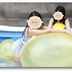 二人屋外プールpop巨大な異形の風船