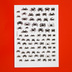 カニのシルエットイラストをOHPフィルムにモノクロで印刷し、金の箔を押しました。 写真で見ると場所により色が違ってみえますが、実際には同じ色の箔が均一に乗っています。見る角度や光のあたり具合によって黒っぽくみえたりします。 写真で黒くみえるところは実際は透明です。 必要な部分をはさみで切り取り、レジン封入用にお使いください。 表面は金、裏面は黒です(写真2)。 さまざまなカニのシルエットイラスト20種をサイズにバリエーションをつけて収録しました。 収録したカニの種類 イシガニ、ガザミ、ケガニ、ハマガニ、アシハラガニ、ヒメアシハラガニ、ヒライソガニ、イソガニ、アカテガニ、サワガニ、シオマネキ、ヒラツメガニ、スナガニ、ヤマトオサガニ、ズワイガニ、タカアシガニ、タラバガニ、ハナサキガニ、ベニズガイガニ、モクズガニ 全80点(サイズ大 25点、サイズ小 55点)。 絵柄のサイズ サイズ大 長辺9〜18mm、サイズ小 長辺6〜13mm。 【素材】 OHPフィルム 厚さ0.10mm 箔押し スタンピングリーフ 金 【サイズ】 幅105×高さ148mm(A6判、ほぼはがきサイズ) 【購入の際の注意点】 写真と実物では多少色味が異なる場合があります。 市販のレーザープリンタにOHPフィルムを使って印刷し、箔押ししているので、精密さに欠けるところがあります。 制作工程上、どうしても余分に箔押しされているところ、箔押しが抜けているところが発生してしまいます。あらかじめご了承のうえ購入をお願いします。 このフィルムを使用して制作したオリジナル作品の販売はOKです。 フィルム自体の転売やコピーはおやめください。