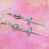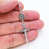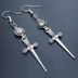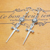 アンティークシルバー ゴシック調ソード(剣)とラインストーンのスリムなピアス サージカル可
