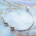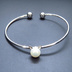 シルバー925 猫耳パールがセンターについたバングル 淡水パール(クリアホワイト) ブレスレット