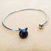 シルバー925 猫耳パールがエンドについたバングル 淡水パール(ブラックパール) ブレスレット