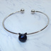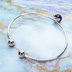 シルバー925 猫耳パールがセンターについたバングル 淡水パール(ブラックパール) ブレスレット