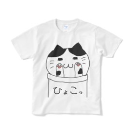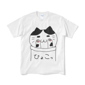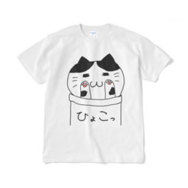 ひょっこりねこ ハチワレ Tシャツ ホワイト