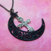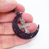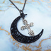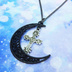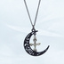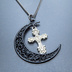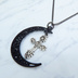 ゴシック調 アラベスクな透かし模様の入った黒の三日月とロザリオを組合わせたネックレス アジャスター付