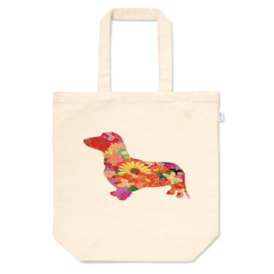 トートバッグ - M - プリント面積中花柄の可愛いミニチュアダックスフンドのトートバッグ。 この商品はpixivFACTORYで作られた商品です。サンプル画像は完成イメージのため、実物と異なる場合があります。