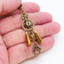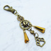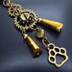 スチームパンク風アンティークカラーの歯車と肉球のメタルタッセルキーホルダー 猫 犬 バッグチャーム
