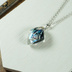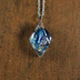フュージングという技法で製作したガラスのペンダントです。 ブルーのガラスの上にレースのようなキラキラなガラスが乗ったペンダントです。 約22㎜×約15mm チェーンの長さ 約44㎝+アジャスター 5㎝
