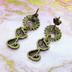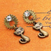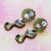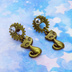 アンティークカラーの猫と歯車のスチームパンク風スタッドピアス ポストピアス クリスタルガラス