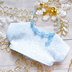 涼やかなお色の生地を使った小花柄のTシャツに、さり気ないお花のクリアパーツがワンポイントになっています🌸