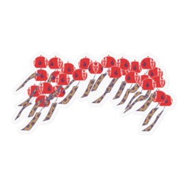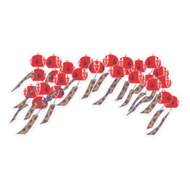 紅風鈴狐 ステッカー。 狐が描かれた風鈴と風にはためく短冊。 色違いの藍風鈴狐も販売中。