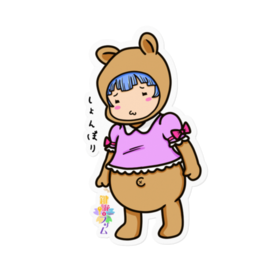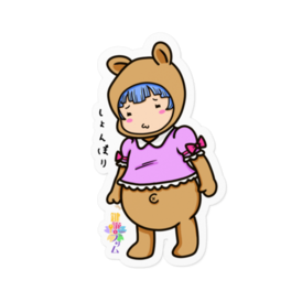 ステッカー - 160 x 160 (mm)お洋服が小さすぎて、しょんぼりしている熊さんプリムです☺ この商品はpixivFACTORYで作られた商品です。サンプル画像は完成イメージのため、実物と異なる場合があります。