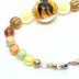 ビーズとトンボ玉で作った羽織紐です。 中央はトンボ玉を使用しています、購入時に野ざらしとなっていた商品のため、傷などはご了承ください。 強い衝撃を与えると割れてしまう恐れがあるので、取り扱いにはご注意ください。 ゴムテグスを使用しています。伸ばし過ぎると端処理がビーズの外にはみ出すことが有るのでご注意ください。 端にはカニカンを付けております。 羽織紐のほか、バックチャームとしてもお使いいただけます。 チェーンを繋いでブレスレット、ネックレスなどにもご活用ください。 ※本商品に各追加金具は付属しません。 長さ(金具含む)/約23cm