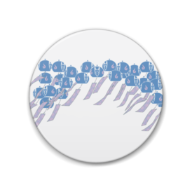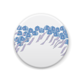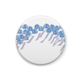 藍風鈴狐 缶バッジ。 狐が描かれた風鈴と風にはためく短冊。 色違いの紅風鈴狐も販売中。
