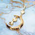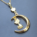 マットゴールド 三日月と猫の大人可愛いネックレス ハート ムーン アジャスター付 長さ変更可