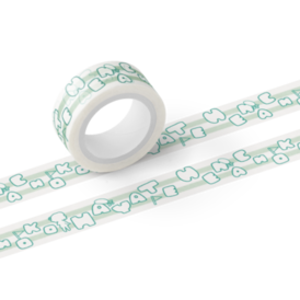 目に優しい淡い緑色のボーダーに まるみのある文字の名前がかわいいマスキングテープ! (15㎝幅 長さ3mあります) 真ん中にへなちょこのシルエットや へなちょこのトレードマークの帽子や🚩が あしらわれてます(∩´∀`)∩ デザイン重視してしまい、使い勝手は…(遠い目) この商品はpixivFACTORYで作られた商品です。サンプル画像は完成イメージのため、実物と異なる場合があります。