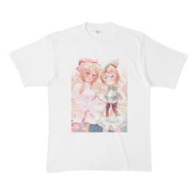 Tシャツ - XL - 白ホロライブ所属の尾丸ポルカさん、不知火フレアさんの二次創作グッズです この商品はpixivFACTORYで作られた商品です。サンプル画像は完成イメージのため、実物と異なる場合があります。