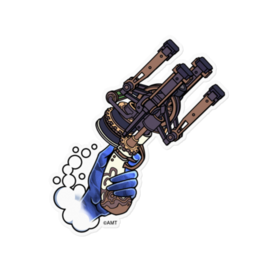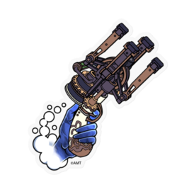 VRアドベンチャーゲーム『オノゴロ物語』に登場する「陰陽銃」のデフォルメ版のステッカーです。 左手の「陰陽銃」です。 サイズバリエーション:100㎜×100㎜、160㎜×160㎜ 素材:塩ビ(クリアタイプ / ホワイトタイプ)