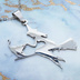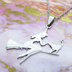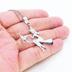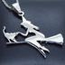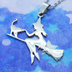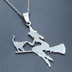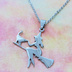 ステンレス製 ホウキにまたがる魔女と猫のペンダントネックレス シルバーカラー 魔法使い 猫 シルエット