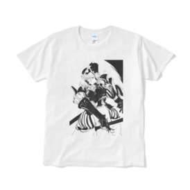 Tシャツ(短納期) - XL - ホワイト戦士の女の子のTシャツです。 (この商品はpixivFACTORYで作られた商品です。サンプル画像は完成イメージのため、実物と異なる場合があります。)